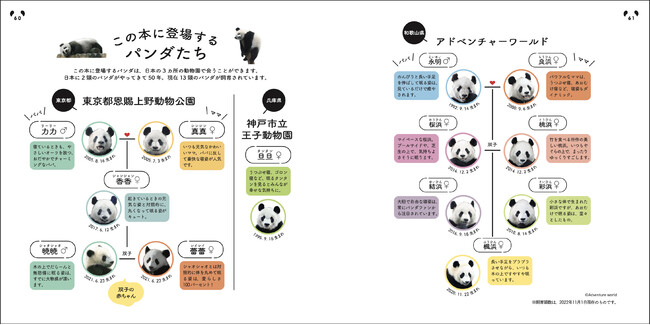 昨年生まれたばかりの上野動物園の双子パンダ、シャオシャオとレイレイ、来年2~3月に中国に返還予定のシャンシャン、大人気の子パンダの楓浜、クセのある寝姿がいつも話題の結浜など、日本全国のスターパンダが大集合。