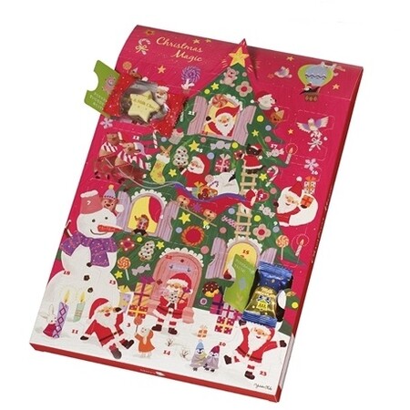 クリスマスまで数字の窓を開けながら、どのお菓子がでるかお楽しみ。かわいいクリスマス柄の個包装のスイーツが2個づつ入っています。