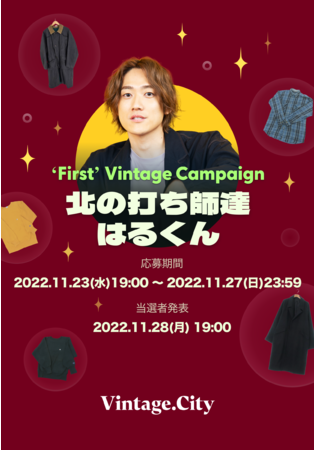 NAVER J.Hub Corporation(本社:東京都品川区)は、ヴィンテージ・ファッション・アプリ「Vintage.City(ヴィンテージ・シティ)」(運営代行:株式会社MXN JAPAN、本社:東京都品川区)において、「あなたの初めてのヴィンテージを見つける」をテーマにした「First Vintage」キャンペーンの第5弾を、人気マルチクリエーターグループ「北の打ち師達」に所属するメンバー「北の打ち師達はるくん」と共に、2022年11月23日(水)19:00よりスタートします。詳細は北の打ち師達はるくんのYouTubeチャンネル:ハルキの古着(https://www.youtube.com/channel/UC2T_VifVaRwTjLhtJq4yXKA?app=desktop)で発表します。今回もイベント期間中に撮影の裏側記事(メイキング)をアプリ内のコミュニティで掲載する予定です。