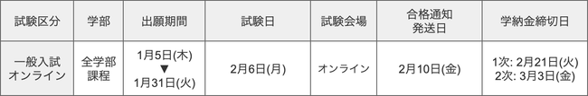 一般入試オンライン、共通テストプラス、共通テスト利用前期