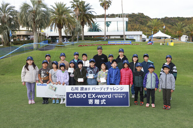 石川選手は、子供たちに運動だけでなく勉強も頑張ってほしいという想いから、2018年より国内で開催されるジャパンゴルフツアーで獲得したバーディ数と同数のカシオの電子辞書を小学生にプレゼントする「バーディチャレンジ」活動を開始。前2020-2021年シーズンでは合計291個のバーディを獲得し、同数となる291台の電子辞書の寄贈を進めています。
