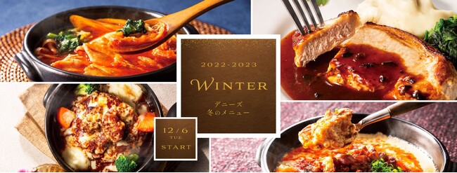 デニーズ(株式会社セブン&アイ・フードシステムズ 東京都千代田区)は、2022年12月6日(火)より、冬にぴったりのあったか料理やデニーズのオリジナル商品「スープハンバーグ」の新作など、冬季限定メニューの販売を開始します。