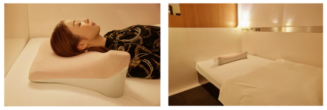 今回の実証実験では、スマート枕の商品化に向けた実際の睡眠データを取得するため、「ファーストキャビン市ヶ谷」の客室に「ねむりす」を設置し、「睡眠改革 スマート枕ねむりす・改眠プラン」として販売します。一般発売前の「ねむりす」を実際に一晩体験できるのはファーストキャビン市ヶ谷のみです(2022年11月現在)