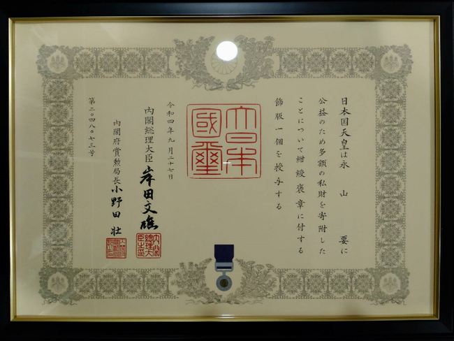 OBI HOLDINGS グループ 代表 永山 要様が紺綬褒章を受章されました