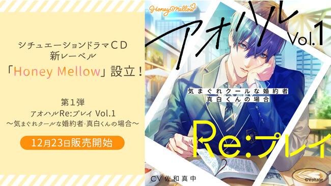 株式会社ボルテージ(本社:東京都渋谷区 代表取締役:津谷 祐司)は、シチュエーションドラマCDの新レーベル「Honey Mellow」(読み:ハニーメロウ)を設立し、新レーベル第一弾となる作品「アオハルRe:プレイ Vol.1 ~気まぐれクールな婚約者・真白くんの場合~」 (CV.佐和真中) の事前予約を2022年12月16日(金)より開始することをお知らせいたします。