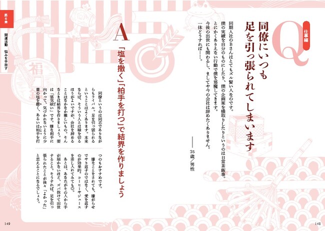人間関係、恋愛・結婚、仕事、お金、健康、とカテゴリー別のお悩み相談、開運Q&Aも網羅。
