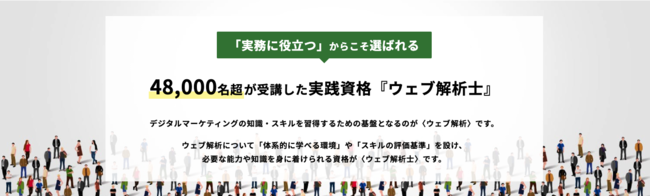 「アクセス解析を軸としたウェブ解析スキルを身につけ、データを読み取り、正しい判断ができるスキル」の会得を目標とした資格です。