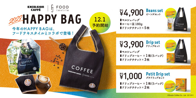 “FOOD TEXTILE”とのコラボバッグ!「2023 HAPPY BAG」 エクセルシオール カフェで12月1日(木)から予約開始