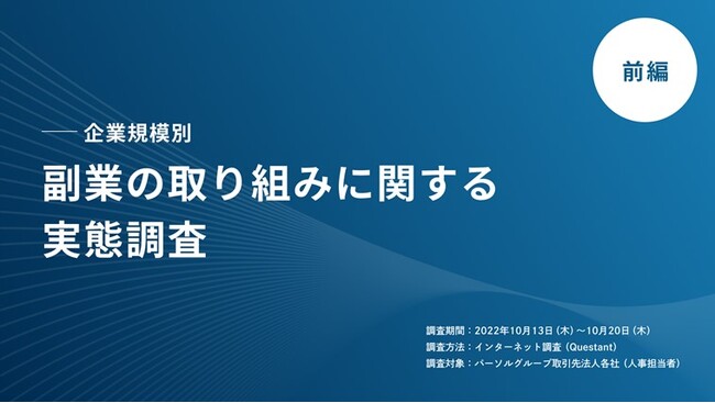 総合人材サービス、パーソルグループのパーソルイノベーション株式会社(本社:東京都港区、代表取締役社長:長井 利仁)が運営する副業人材マッチングサービス『lotsful(ロッツフル)』( https://lotsful.jp/ )は、企業規模別に副業実施の実態を調査しました。前編では、企業規模別に副業に関する認可の有無・時期・許可した理由等を考察し、後編では、許容後の評価・認めない理由について考察します。本日は、前編の結果を公開します。
