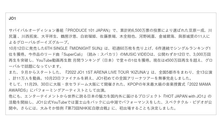 また、引き続きJO1の活動やビューティをサポートし続けます。