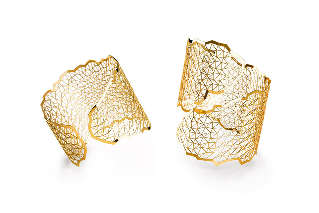 〈ニーシング〉のデザイナー陣は、定番デザインの「ニーシング・トピア」を次のレベルへと進化させ、「ニーシング・トピア ビジョン」と名付けたラグジュアリーコレクションを発表しました。手付かずの大自然にインスピレーションを受けたトピアは、紙のように薄い貴金属が手作業で織り込まれることによって生まれました。