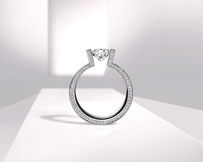 1873年創業したモダンジュエラー〈ニーシング〉。ドイツの造形学校「バウハウス」の流れを汲むデザインは究極のシンプルを追求。卓越したクオリティと職人的技術により生み出されるジュエリーは、数々のデザイン賞を受賞しています。ダイヤモンドが宙に浮いたようなセッティングが特徴の「ニーシング・シュパンリング(R)」は2000年、ドイツの高等裁判所に美術品として認定され、著作権を獲得。ドイツやノルウェーなどの美術館に永久所蔵されています。