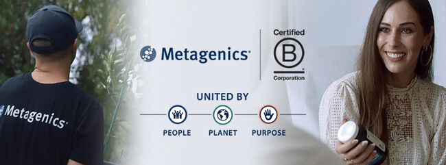 メタジェニックス株式会社(代表取締役社長:沢田徹、本社:東京都新宿区)は、このたび、米国メタジェニックス本社(以下、メタジェニックス)が推進するグローバル事業活動の一環として、米国の非営利団体B‐Labによる国際認証制度「Bコーポレーション」(以下「B Corp」)を取得しました。この認証は、B-Labの定めた厳しい基準(ガバナンス、社員、コミュニティ、環境、顧客の5つの指標)を満たした企業が取得を認められるグローバル認証です。これにより、メタジェニックスは、2006年以来16年間で世界85カ国・地域、約5,800社(例:パタゴニア、ダノンなど)が取得した認証企業の1社となりました。