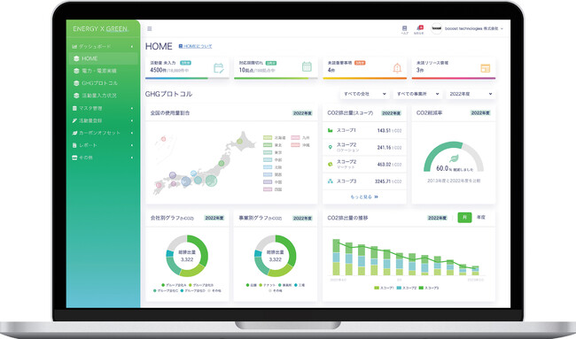 『ENERGY X GREEN』はCO2等排出量の可視化・管理・オフセット・報告レポートが可能なカーボンマネジメントプラットフォームです。各業界のNET-ZEROリーダーから選ばれ、累計12万拠点以上に導入されています。製品・サービスごとの排出量が可視化でき、計画に沿ったCO2の削減(省エネ、再エネ、非化石証書の購入等)を実行できます。さらに、国際イニシアティブ(RE100、SBTi、TCFD等)や温対法等の各種報告レポートを自動で作成。効率的な脱炭素経営をサポートします。
