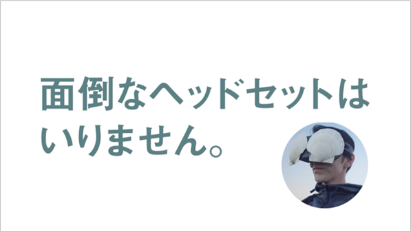 主人公の男性がホタテのヘッドセットをつけると… 「アオモリバース」の世界へ!
