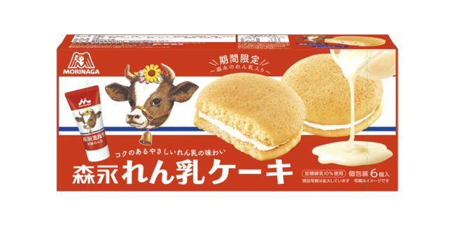 2022年10月にも、「森永れん乳」と「小枝」「ハイチュウ」「クッキー」がコラボレーションした商品を発売し、大変ご好評いただきました。この度発売する「れん乳ケーキ」は、「森永れん乳」を使用した練乳クリームをしっとりケーキでサンドし、やさしい甘さとコクのある味わいをお楽しみいただけます。