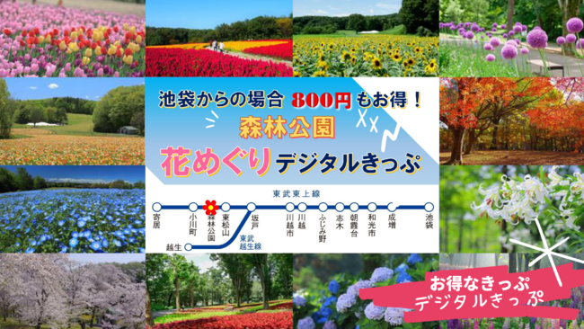 東武鉄道、国際十王交通、国営武蔵丘陵森林公園では、本年4月1日から11月30日までの期間限定で発売している「森林公園花めぐりデジタルきっぷ」が、大変ご好評をいただいていることから、12月1日以降も発売を継続し1年を通してお求めいただけるようにいたします。