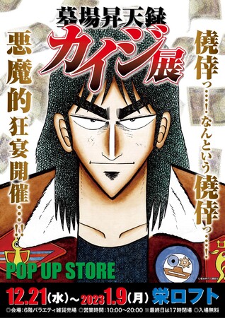 マンガ、アニメ、特撮などの人気コンテンツをテーマにした企画展を開催、運営している株式会社クレイジーバンプは、12月21日(水)より栄ロフトにて【墓場昇天録カイジ展 POP UP STORE】を開催致します。
