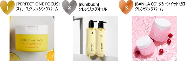 今月は、『洗顔・クレンジング』をピックアップして月間ランキングをご紹介します。1位には、[PERFECT ONE FOCUS] スムース クレンジングバームがランクイン。28種の保湿成分を含み、洗い上がりもしっとりするクレンジングバームです。 2位[numbuzin] ク レンジングオイルは、軽い付け心地でもしっかりと汚れに吸着するオイルタイプクレンジングです。3位には、さっぱりとしたシャーベッ トバームタイプの[BANILA CO] クリーンイットゼロクレンジングバームがランクインしました。バームタイプやオイルタイプなど、肌の状態や好みに合わせて使用できるクレンジングアイテムがランクインする結果となりました。