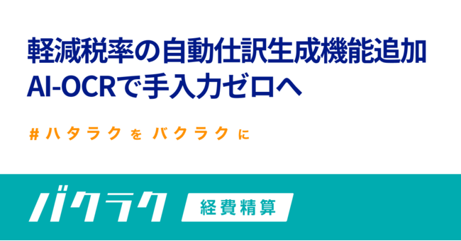 バクラク経費精算、軽減税率の自動仕訳生成機能を追加。AI-OCRが領収書の税率別の金額を読み取り、手入力をゼロへ