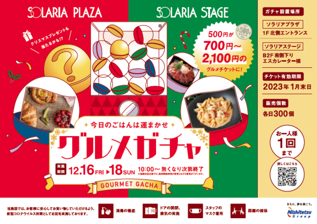 西日本鉄道(株)が運営するソラリアステージとソラリアプラザでは、今年5月に実施し大好評であった企画「グルメガチャ」の第二弾を12月に実施することが決定いたしました!