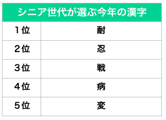 調査名称:シニア世代が選ぶ今年の漢字