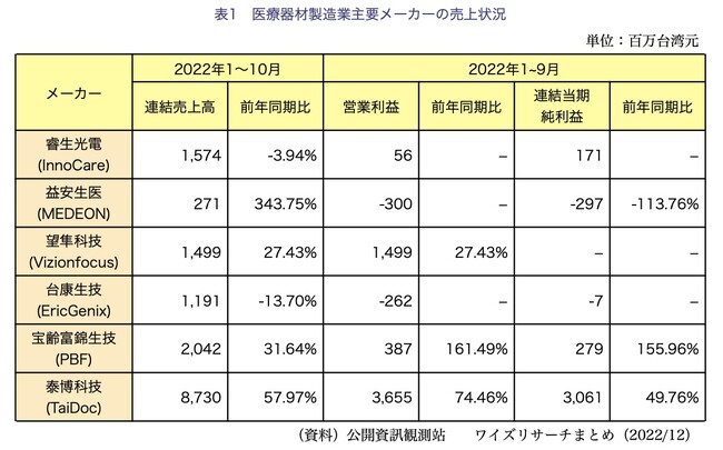 <台湾医療器材メーカー大手の2022年の動向>