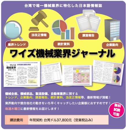 ・日本語台湾経済ニュース、機械業界ジャーナル配信