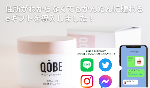 Shopifyアプリ「All in gift」を活用すれば、LINEやTwitter、InstagramのDMで「ギフト受け取り用」のURLを送るだけで、かんたんにギフトを贈ることができます。