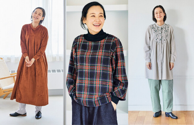 冬景色に映えるカラーや刺しゅうを施した「チェックトップス」や「ワンピース」など、12点の冬の新作アイテムがフェリシモ「Sunny clouds[サニークラウズ]」から登場