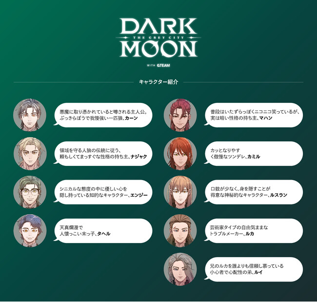 『黒の月: 灰色の都市』は12月7日にデビューEPを発表したグローバルグループ&TEAM(エンティーム)とコラボレーションしたオリジナルストーリーで、人狼というアイデンティティの下で兄弟として結束した少年たちが世の中に対抗し互いを守りながら成長する物語で、WebtoonとWebノベルにて同時に公開されています。