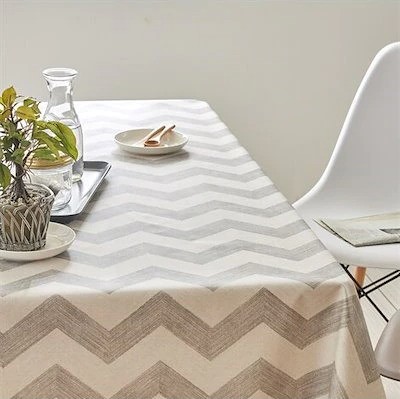 シンプルなデザインのテーブルクロス。クロスを敷くだけで一気に雰囲気を出すことができる。白とグレーの配色はトレンドの北欧スタイルのお部屋にもぴったり。日常だけでなくクリスマスコーデのベースとしても◎。