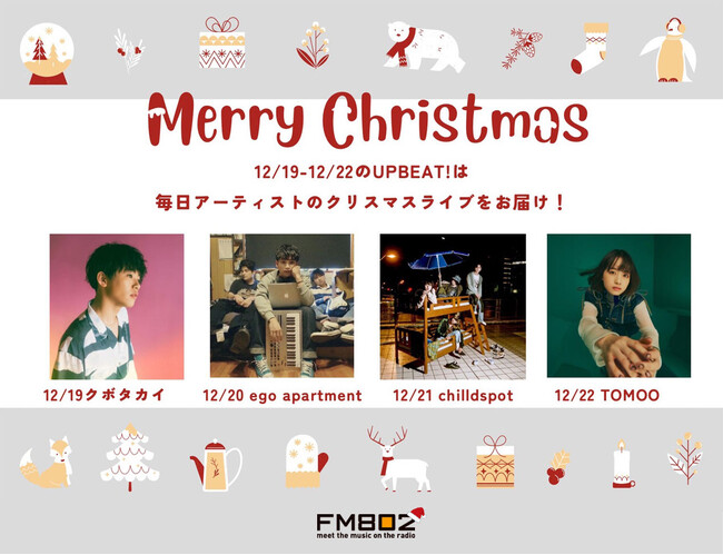 クボタカイ・ego apartment・chilldspot・TOMOOのクリスマススタジオライブをオンエア!