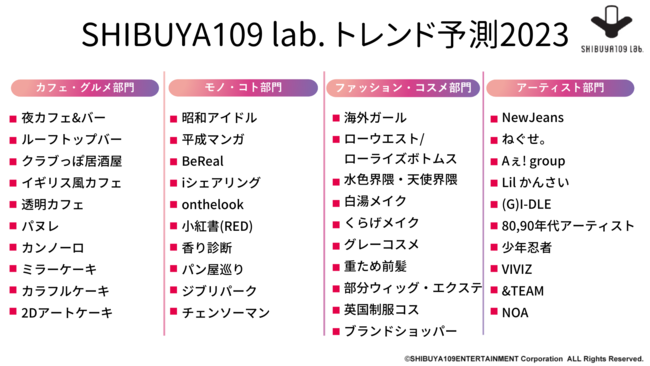 ※ 公開データの引用・転載の際は、『SHIBUYA109 lab.調べ』と明記いただきますようお願い申し上げます。