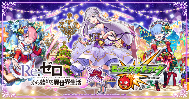 株式会社MIXI(東京都渋谷区、代表取締役社長:木村 弘毅)は、スマホアプリのひっぱりハンティングRPG「モンスターストライク」(以下モンスト)において、TVアニメ『Re:ゼロから始める異世界生活』とのクリスマス仕様のコラボを本年12月16日(金)12:00より開催します。