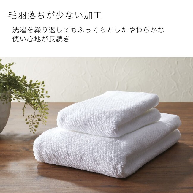 吸水力抜群な綿とマイクロファイバーのダブルパイル構造で、吸水性に優れたタオルです。部屋干し抗菌防臭加工も施されており、洗濯してもはやく乾くので部屋干しにもおすすめ。肌ざわりがやさしく、洗濯をくりかえしてもふっくらとした使い心地が長続きいたします。