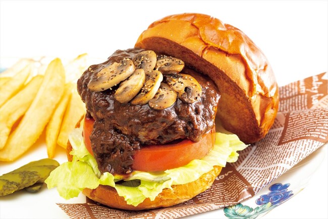 パティには「フローラ」の人気メニューであるハンバーグを使用し、牛スジと香味野菜をデミグラスソースでじっくりと煮込んだ総料理長自慢の「黒ハヤシソース」をたっぷりと味わえるボリューム満点のハンバーガーです。
