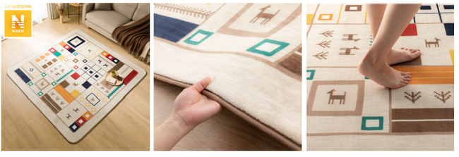 吸湿発熱素材を使ったニトリのNウォームは、毛布や敷パッドなどの寝具だけでなく、リビングには、こたつ布団、ラグ、クッション、玄関からスリッパ、その他にもルームウェア、キッズ・ベビー用品、ペット用のベッドなど、お客様の住まいの様々なシーンを、快適かつあたたかくするアイテムを取り揃えております。