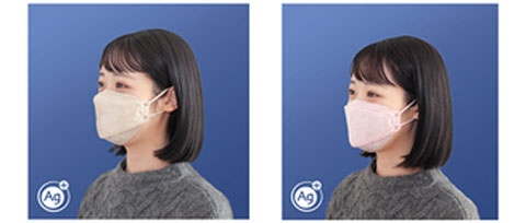 マスク形状については、『シャープクリスタルマスク』の象徴である6角形をベースとした立体構造(立体クリスタル形状(※1))を踏襲。口元に空間を確保した呼吸しやすい構造で、耳ひもには、マスク本体と同系色で、伸縮性が高くつけ心地のよい平たいタイプの耳ひもを採用しました。衛生面では、ウイルス飛沫などの侵入を99%以上カットする不織布フィルターおよびマスク表面での細菌の増殖を抑制(※2)する抗菌加工を採用、1枚ごとの個別包装に対応しています。
