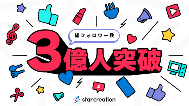株式会社スターミュージック・エンタテインメント(本社:東京都渋谷区、代表取締役:渡邊 祐平)が運営する「Star Creation」(https://star-creation.com/)は、所属 / 提携クリエイターの総フォロワー数が※国内最速で3億人を突破しました。