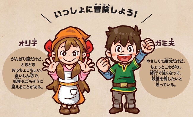 いっしょに冒険するのは、「オリ子」と「ガミ夫」。