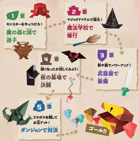 妖怪、モンスター、魔法アイテム、武器…折りながら冒険を楽しめる!
