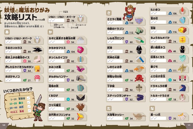 折れた作品のチェックシートも付いていて、折った数で冒険者⇒騎士⇒師匠⇒勇者とレベルアップ!