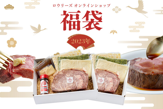 年明けのおうち時間がより豊かな時間となるよう、ロウリーズの公式オンラインショップでは、初売りプライムリブの福袋として、4つの商品を特別価格で販売します。目玉商品は1万以上お得な「福袋ロウリーズ3セット」。厚切りプライムリブに人気の付け合わせ(アカンパニメンツ)3種がついたセットを3つおまとめ買いいただけます。さらに、プライムリブを美味しく調理できる温度計も1本プレゼントします。2023年もご家族や大切な人との食卓に、ロウリーズのプライムリブをお買い求めください。