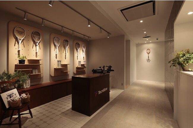 新施設は、1階にはクラブハウスや、フランスのブランド「Tecnifibre(テクニファイバー)」の商品を扱うラケット&ストリングスショップなどテニスに関連したスペースのほか、庭の緑を眺めてゆったりと時間を過ごせる 解放感あふれるカフェ「Café de Lete(カフェドレテ)」もオープン。さらに1~3階には住居空間「Lilas d'Été (リラドエテ)」が入り、”テニス×住居×庭”という、これまでにないコンセプトの複合的な施設です。