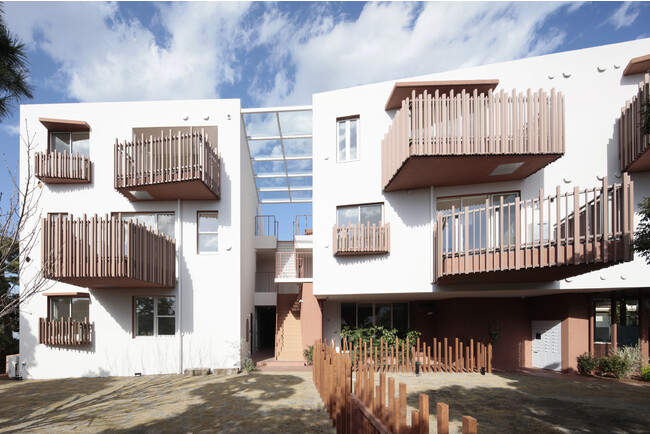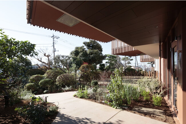 「庭を生活へ取り入れ、建物と庭を連続させることで居住者・利用者が庭を自分たちのものとして活用できる、そんな空間の提案」。木の素材を活かした、緑と調和する外観は美しくも落ち着いた佇まいで、日々の生活を楽しみ、豊かに過ごせる居住空間が誕生しました。