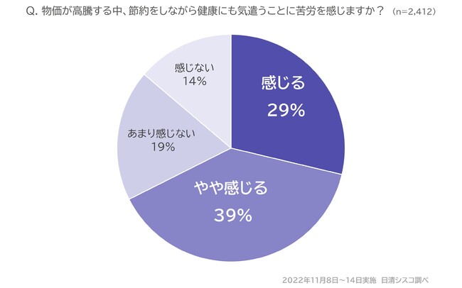 物価が高騰する中、節約と健康の両立に苦労を感じている人は約7割