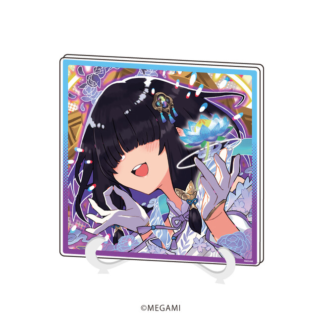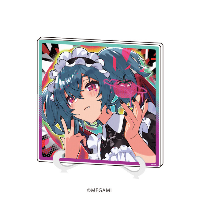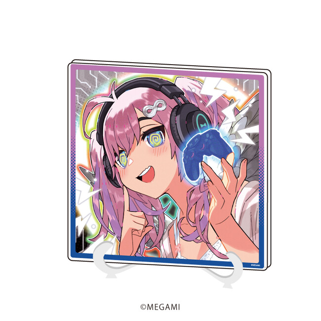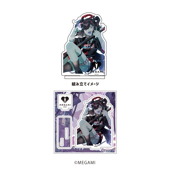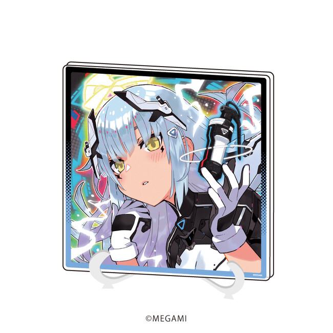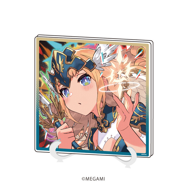 アクリルフィギュアプレートは、ダイカットで加工されたパーツを台座にはめ込んで飾るスタンド型アイテムです。縦横最大120mmの大きさで、全身衣装&ポージングが見られる貴重な一品。3Dの立体物となった全5種の『MEGAMI』たちをお楽しみください。