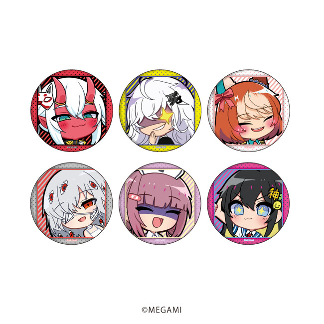 定番グッズの缶バッジは全6種がラインナップ。約65mmの大きめ缶バッジにお顔アップのイラストが描かれているので、『MEGAMI』たちの表情がより見やすくなっています。