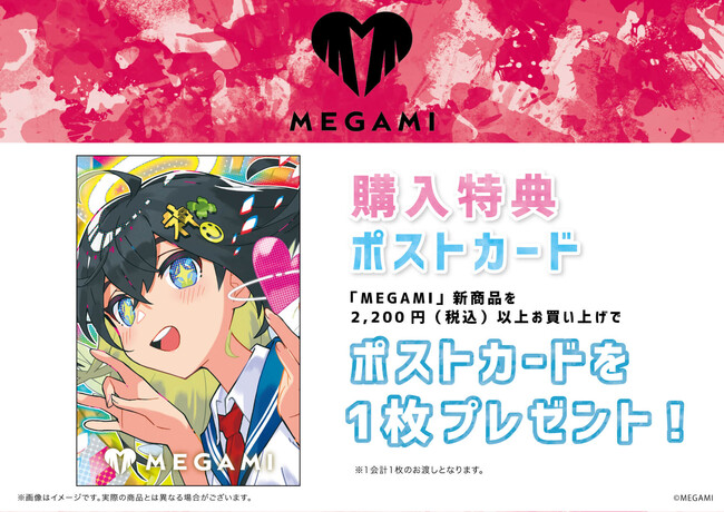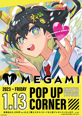 『MEGAMI』新商品を2,200円(税込)以上お買い上げで、ポストカードを1枚プレゼントしています。2023年1月13日からの販売期間中に、ぜひSHIBUYA TSUTAYAへ足を運んでみてください!